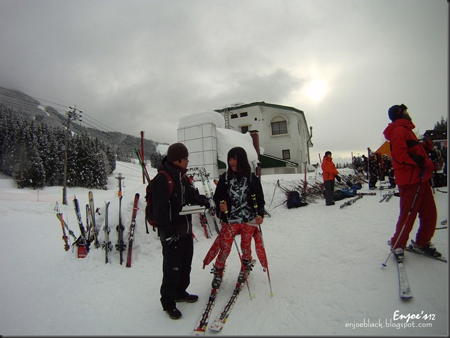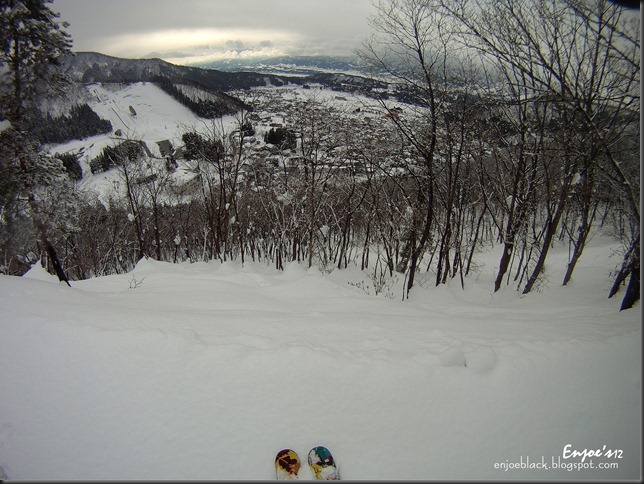 這一天只有在上之平以上才能看的一清二楚,一往山下滑就雲霧繚繞,因此我們乾脆賴在毛無山,享受寬大舒適的滑道,然後一直玩到中午才回到長坂的纜車站吃飯。