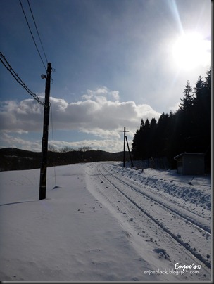 列車靜靜的從鐵道駛來,安比的雪景,我們下次見囉