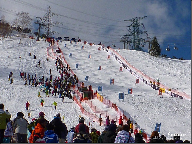不過這一天我沒有機會看比賽,因為新的一團剛到,再加上這次只有我一個SKI教練,所以一早分完組後就開始幫大家分時段上課。雖然沒辦法看比賽,但很幸運的是在搭纜車的時候還是有看到愛子比賽,Lucky~~~Xp
