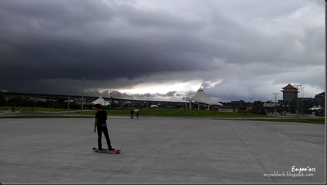 陣雨沒下多久似乎有變小的跡象,所以我們又回到廣場繼續玩,而本來只是想來拍照的奶精直接被抓上場,話說來了當然要上,別想跑XDDD